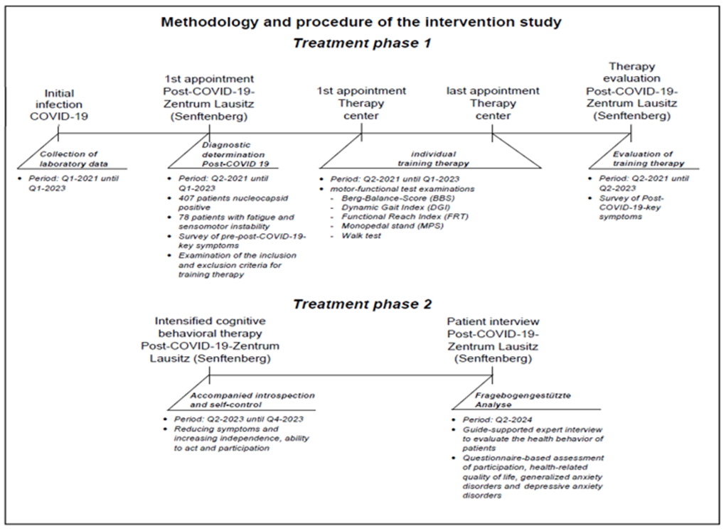 - • Treatment phase 1 (intervention study): Stress-controlled training therapy to improve quantified sensorimotor parameters and post-COVID-19 key symptoms (Q1-2021 - Q2-2023).