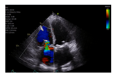 Moderate tricuspid valve regurgitation with first signs of right sided heart failure |